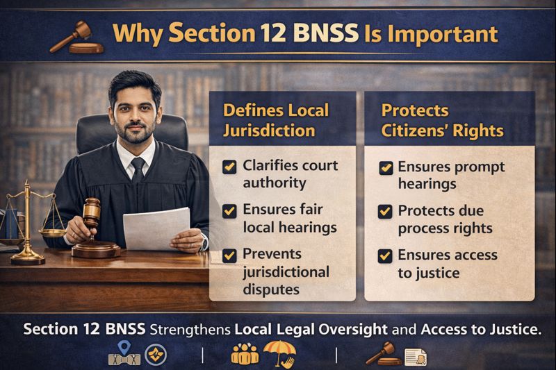 - Clear local jurisdiction avoids confusion when multiple courts exist within a district. Without Section 12 BNSS, two Magistrates could potentially claim authority over the same matter.